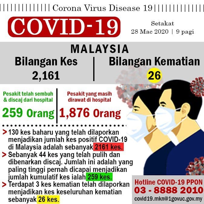 Kemaskini : Setakat 28 Mac 2020, Jam 9 Pagi.